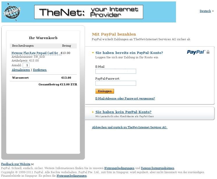 Da Sie sich für die Paypal - Methode entschieden haben, nehmen wir an, Sie schon als Paypal-Kunde registriert zu haben. Wir bitten Sie daher sich einzulogen.